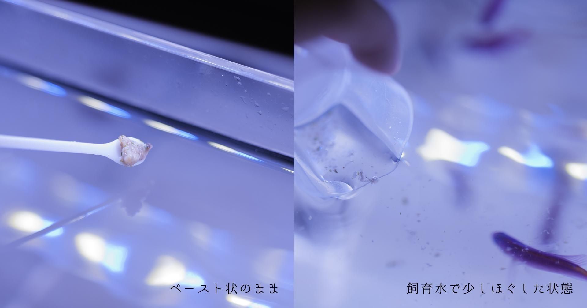 解凍してもある程度、形を保っているのでハリセンボンの大きな口に合うサイズでピンセットで与えています。