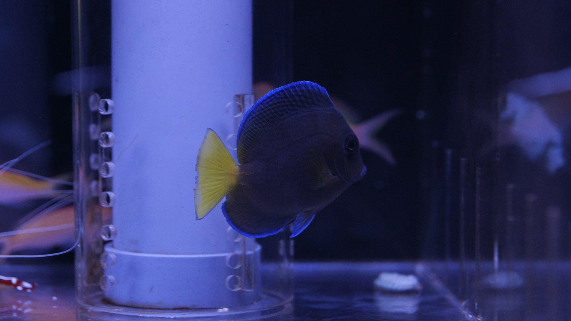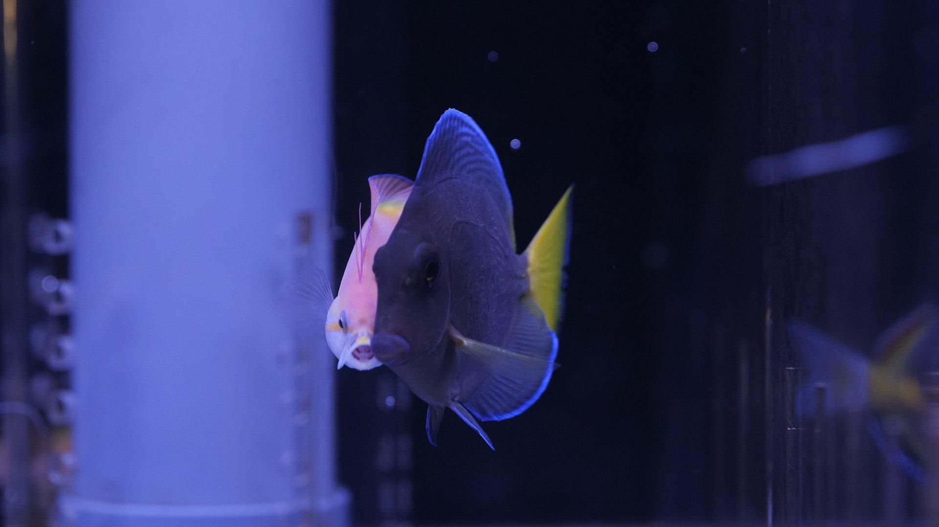 普段与えている餌は海水魚用ハンバーグやWEBCLAMをメインに、冷凍ホワイトシュリンプ、冷凍ブラインシュリンプを混合したものを与えています。メガバイトグリーンや海藻70なども与えています。
