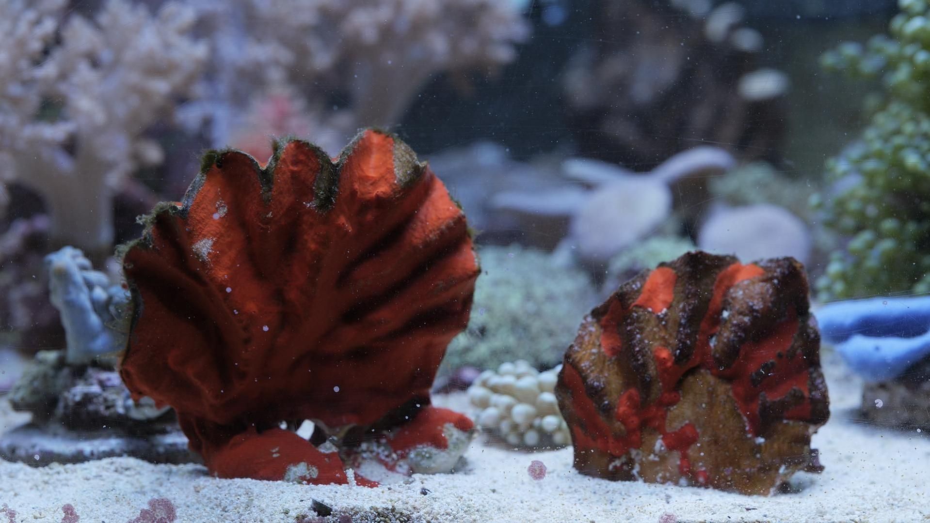 貝の表面に赤いカイメンが共生しているレッドタイプです。