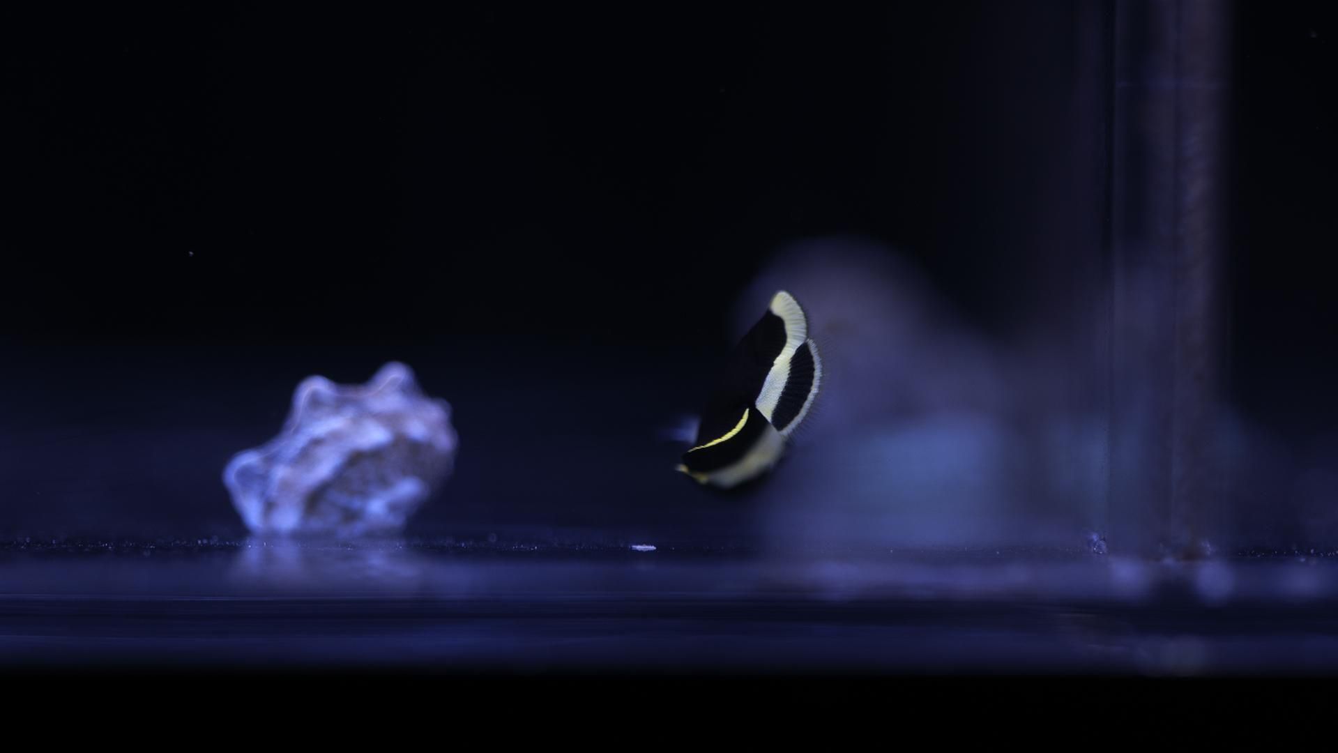 普段与えている餌は海水魚用ハンバーグやWEBCLAMをメインに、冷凍ホワイトシュリンプ、冷凍ブラインシュリンプを混合したものを与えています。メガバイトグリーンや海藻70なども与えています。